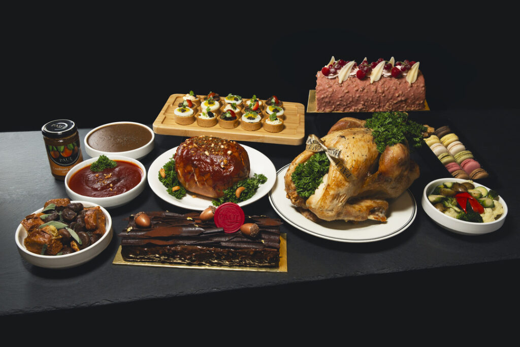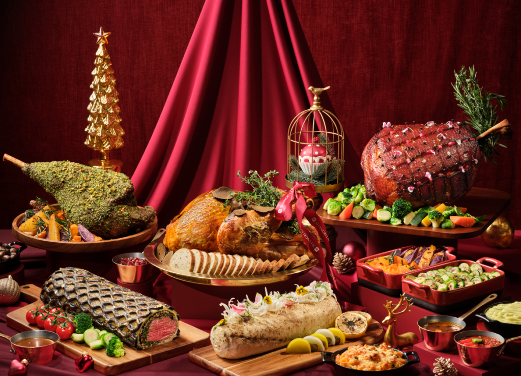 This year, PAUL’s Noël Collection brings a festive spread of sweets and savouries designed to delight every guest. The vibrant Nyonya Series adds a modern twist to tradition, featuring the sumptuous Buah Keluak Turkey ($159) and the bold Chilli Cashew Ham ($89), perfect for sharing around a laughter-filled table. Mini savoury canapés (from $40 for 8 pcs) keep the celebrations flowing, including Maine Lobster & Caviar, Wild Mushroom & Truffle, and Beef Teriyaki & Wasabi, alongside hearty mains like Seared Beef Tenderloin ($39) and Lamb Rack ($89). Classic centrepieces shine with the aromatic Herbes de Provence Roast Turkey ($169) and the sweet-tangy Cranberry & Pineapple Turkey Ham ($89). Desserts take centre stage with the decadent Midnight Chocolate Noël Yule Log ($67), the cheerful Banana-Rama Yule Log ($67), and the bright Frosted Zest ($65), alongside whimsical tartlets including the new Coco Blush Bauble Tartlet ($42/8 pcs) and the beloved Berry Pistachio Winter Globe Tartlet ($42/8 pcs). For effortless entertaining, The Majestic Feast ($449, serves 8–10) includes one Classic or Asian Turkey, one Classic or Asian Ham, Maine Lobster & Caviar Canapés (8 pcs), Beef Teriyaki & Wasabi Canapés (8 pcs), Wild Mushroom & Truffle Canapés (8 pcs), Medium Merry Berry Lychee Yule Log, Medium Banana-Rama Yule Log, 12 macarons, and nine bottles of Maison Perrier Forever. Other bundles ($169–$299) complete the festive offering, making holiday hosting deliciously effortless.