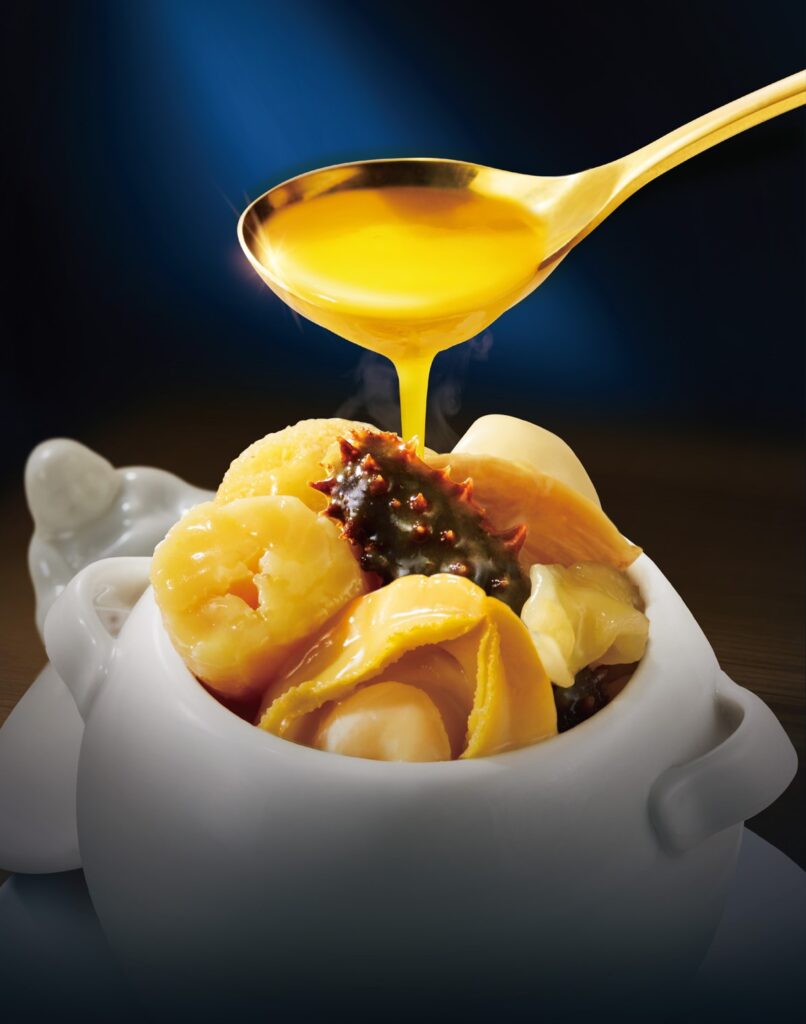 The Golden Broth Buddha Jumps Over the Wall presents a delicate twist on the classic delicacy with a fresh soup base